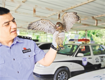 17日,精河县公安局锦福便民警务站民警在县生态园附近巡逻时,发现路边林带有一只长相异于其它小鸟的鸟趴在地上,无力飞行,民警及时救起移交县公安局森林派出所。经鉴定确认该鸟为红隼幼鸟,经过喂养、检查,符合放生条件,于18日将其放归大自然。