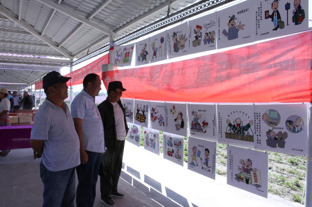 “在旅游节期间举办这次廉政漫画展,利用漫画宣讲‘六大纪律’,旨在通过这种简单易懂、贴近生活的宣传方式,让广大党员干部及群众在轻松愉快的氛围中学习党纪知识。从这两天活动的开展情况来看,游客前来参观的热情很高,对提高党员干部群众的反腐倡廉意识起到了积极的促进作用,达到了预期的效果。”温泉县安格里格镇党委委员、纪委书记董建军说。(李中亚)