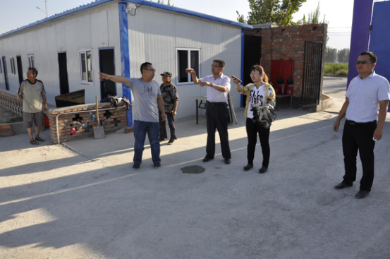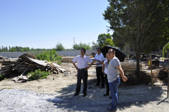 图为督察组对精河县“全面改薄”工程---大河沿子镇二小标准化建设项目现场进行督导检查。